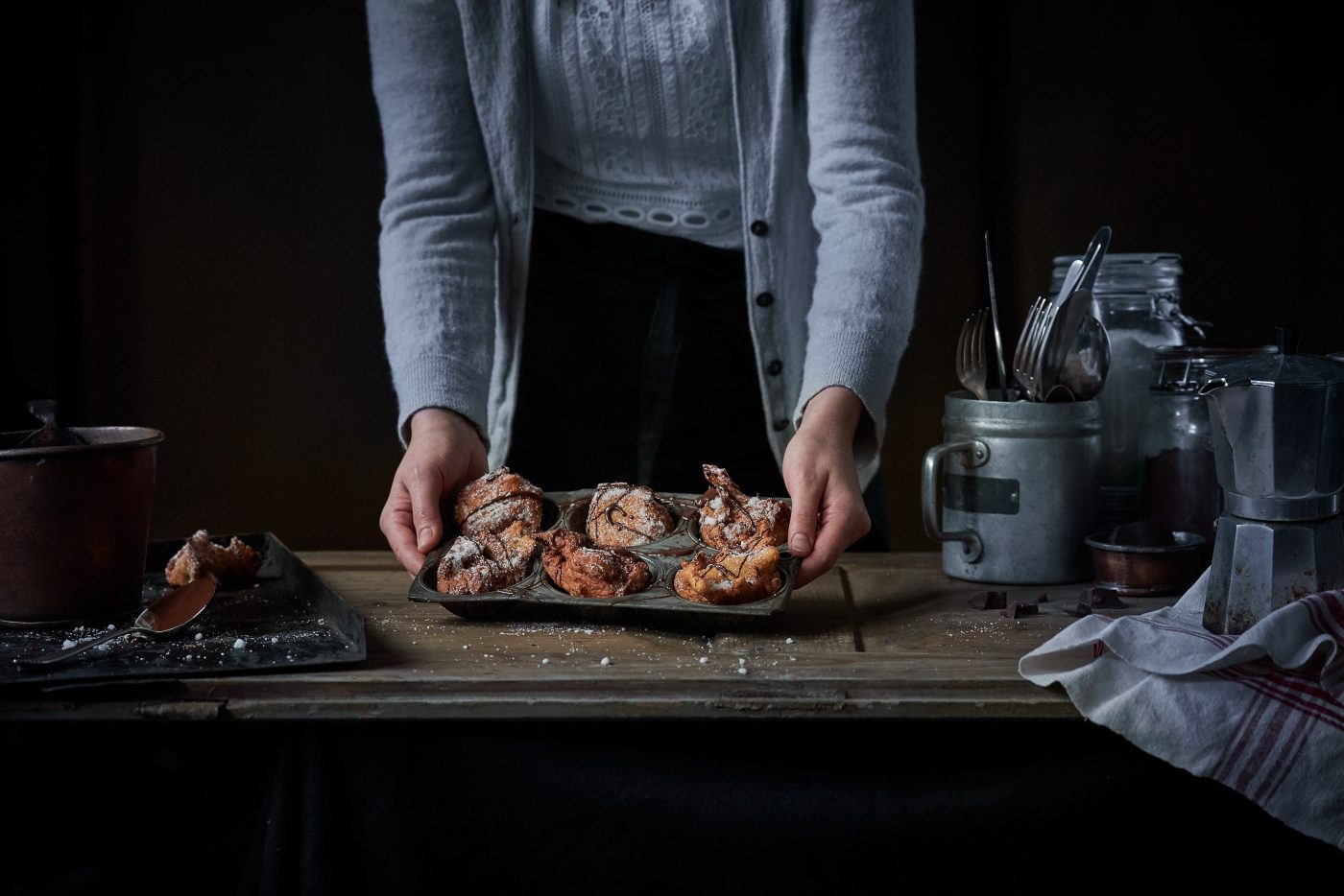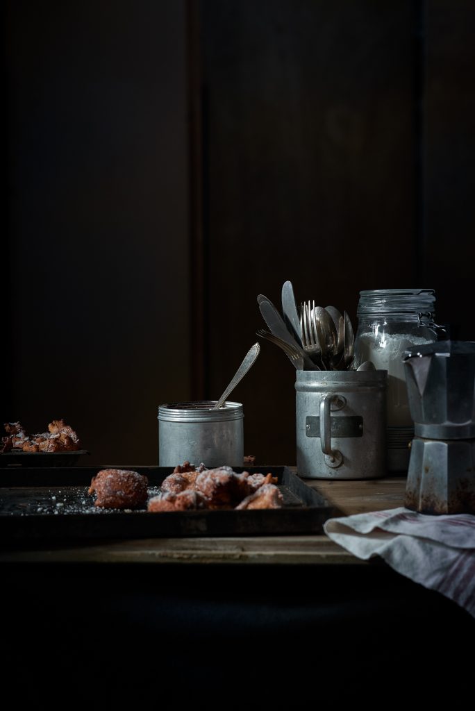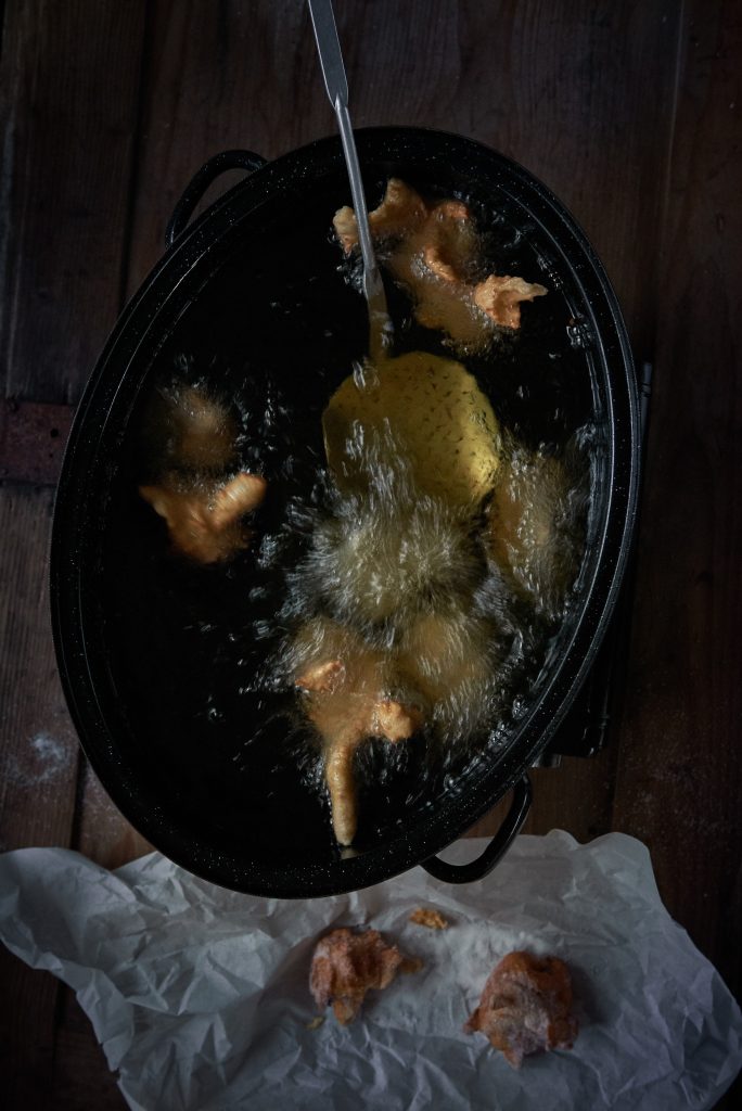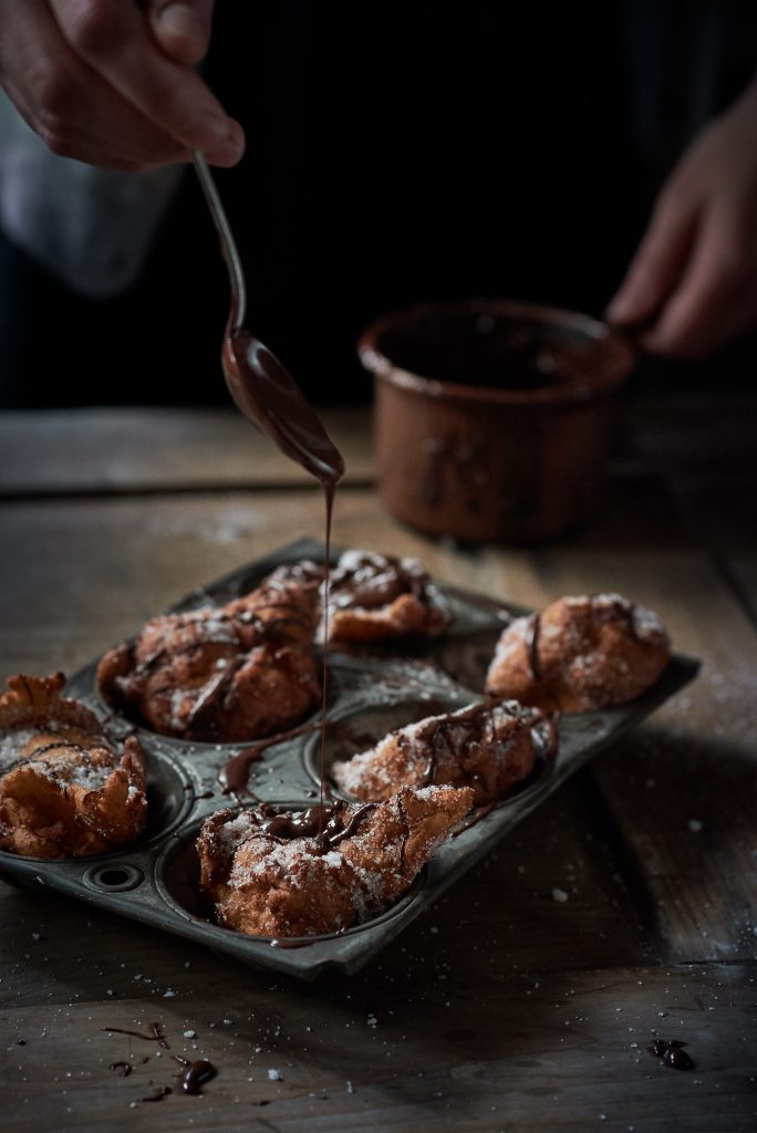 Diese kleinen leckeren Quarkkeulchen werden erst goldbraun in heissem Fett frittiert. Danach wälzt man sie in Zucker. Wenn man möchte, kann man das Gebäck noch mit geschmolzener Schokolade verzieren. Dann können sie eins nach dem anderen gegessen werden, am besten noch lauwarm. Bei solch kleinen Naschereien ist die Gefahr allerdings gross, einen zuviel zu essen. Dieses frittierte Gebäck haben wir im Studio mit Tageslicht fotografiert. Foodstying: Jutta Mennerich.